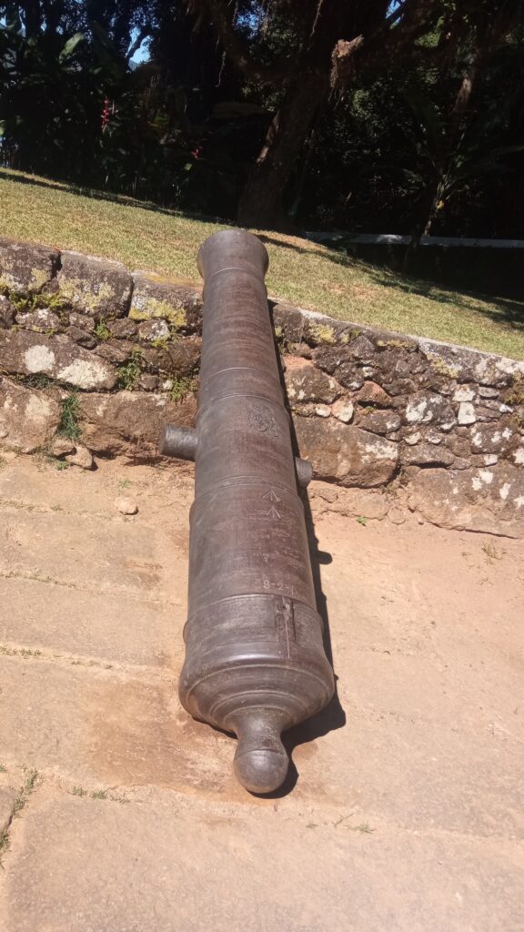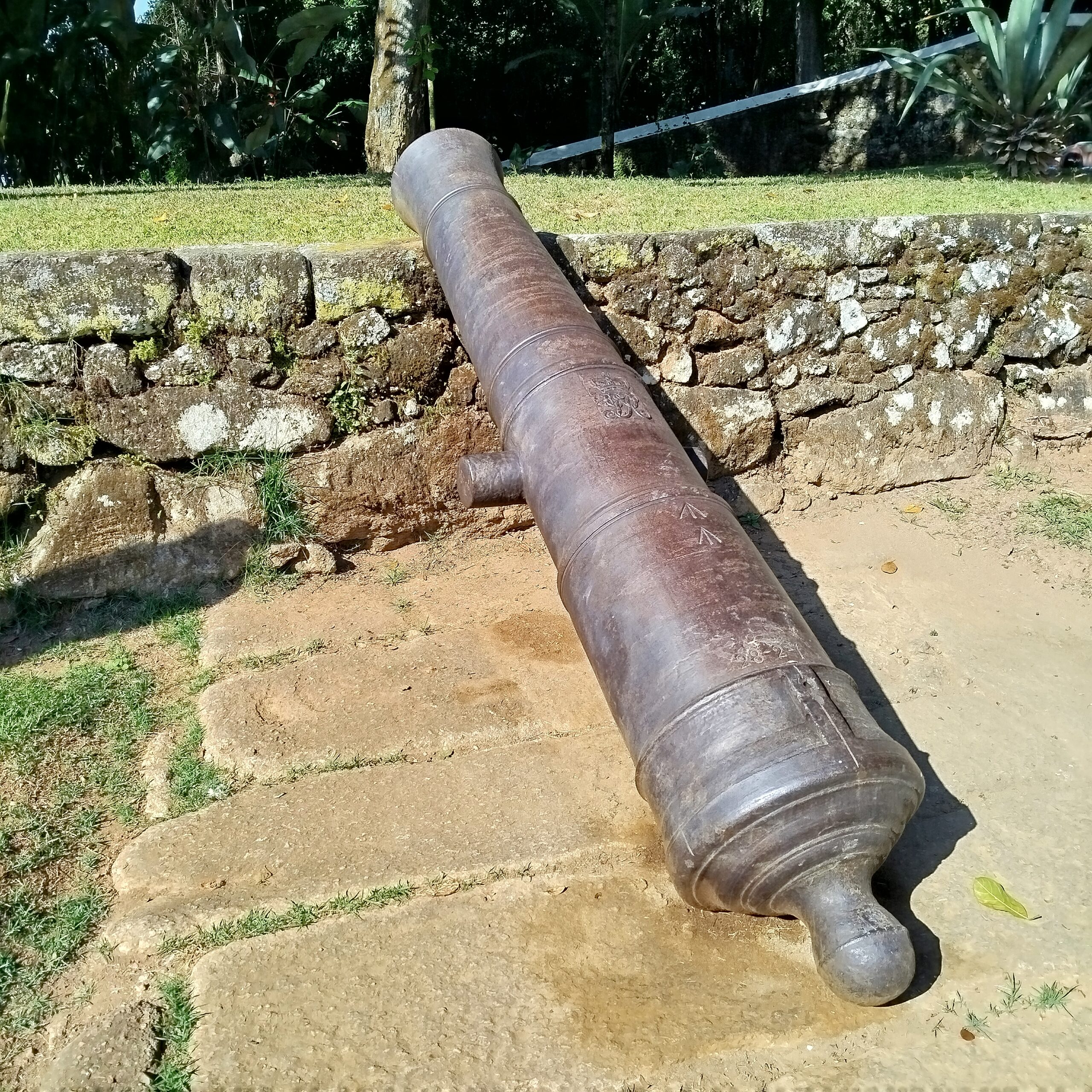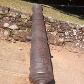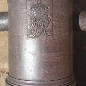 Canhão de 12 libras (12P), de ferro fundido, Jorge III, com características semelhantes às dos itens 01 e 02 AP. As diferenças mais perceptíveis são: o número que aparece no munhão esquerdo (15), que acreditamos ser número de série; as marcas de peso, 28-2-1, correspondentes a 1704 kg; e a existência de um número (“4”), no 2o reforço, colocado no sentido do eixo do canhão. Este último número, apesar de ser de origem incerta, normalmente é conhecido como “número de navio”, uma numeração sequencial que era colocada nos canhões de uma determinada embarcação – observando-se a sequência deste número com o anterior, podemos supor que ambos os canhões tenham vindo do mesmo navio. No munhão direito, aparecem as letras “W.Cº”, que se referem a fundição de Walker and Company, fundada pelos irmãos Samuel, Aaron e Jonathan Walker em Rotherham, Yorkshire, Inglaterra, empresa que esteve em operações de 1746 até 1817, sendo considerada a principal fornecedora da Marinha Inglesa.